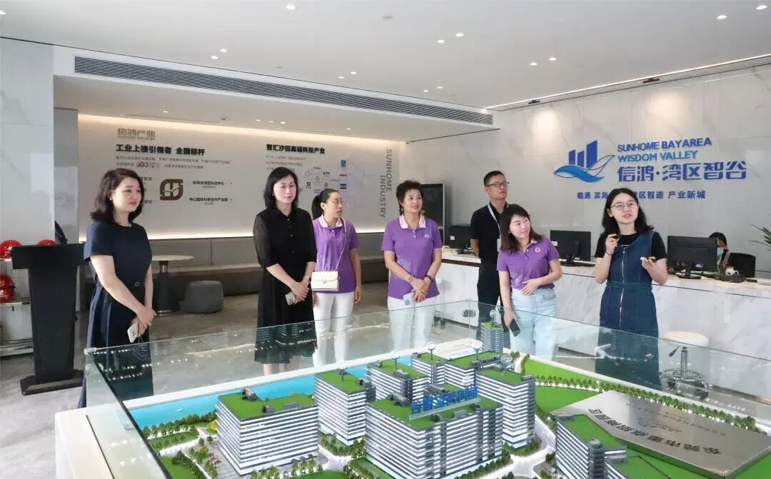 为了解园区规划运营情况、学习企业发展成长经验,6月15日,沙田镇副镇长钟丽梅携沙田镇女企业家联合会一行莅临园区考察,信鸿集团副总经理宋亚娟陪同接待。